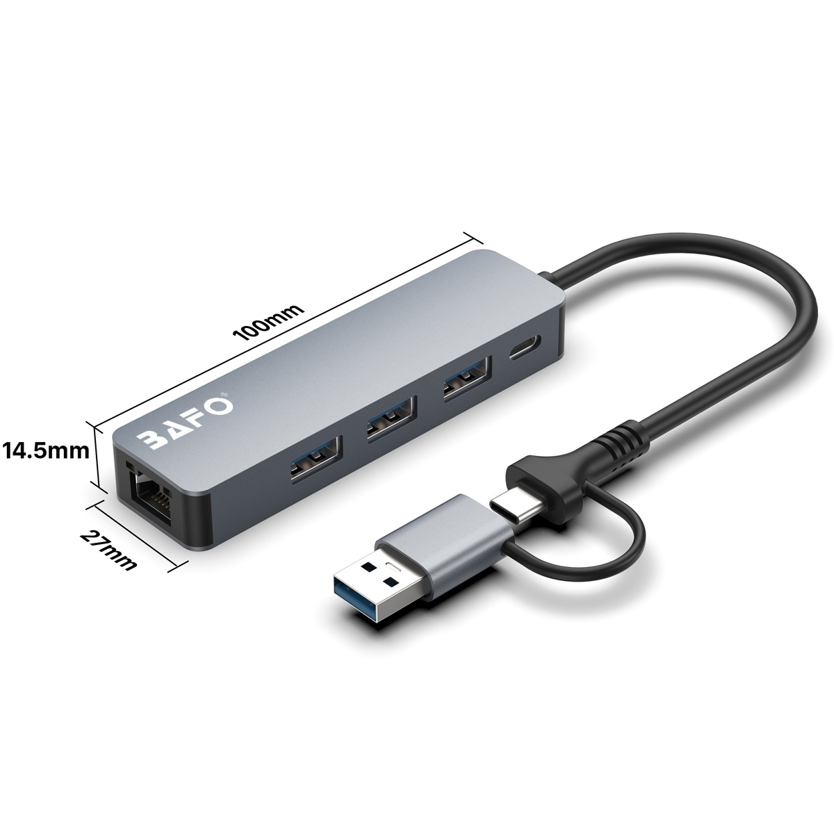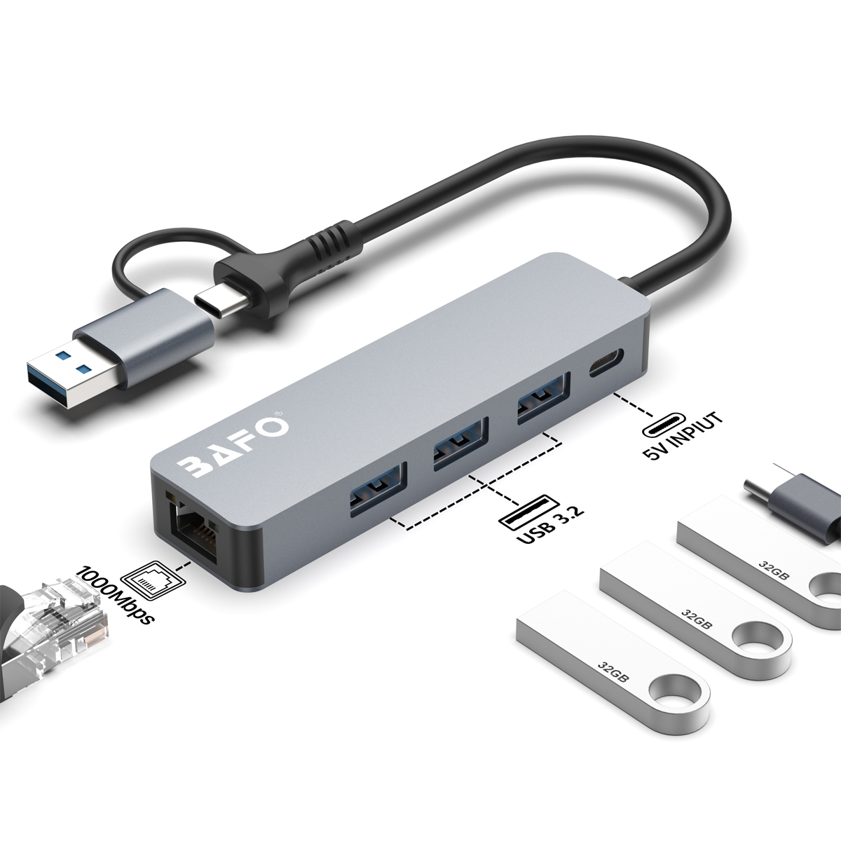 USB-A/C to 3*USB-A3.2(5Gbps)+RJ45(1000M)+USB-C(PD 100W) Docking Station (5 in 1)